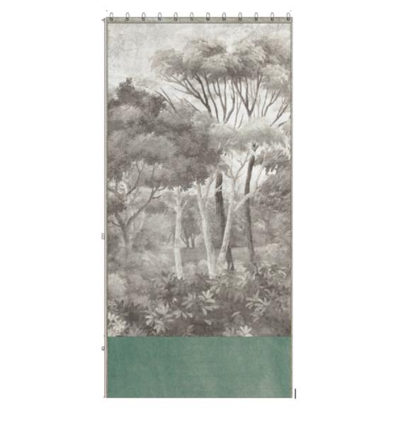 RIDEAU OCCULTANT VELOURS et LIN IMPRIME MANOSQUE DUO celadon PANNEAU DE DROITE :