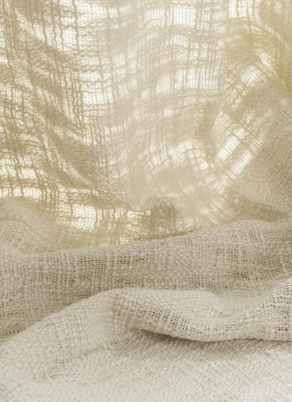 Nos rideaux Nuages sont en coton tissé façon "khadi", bordés sur les 4 côtés par une fine bande de lin couleur naturelle.